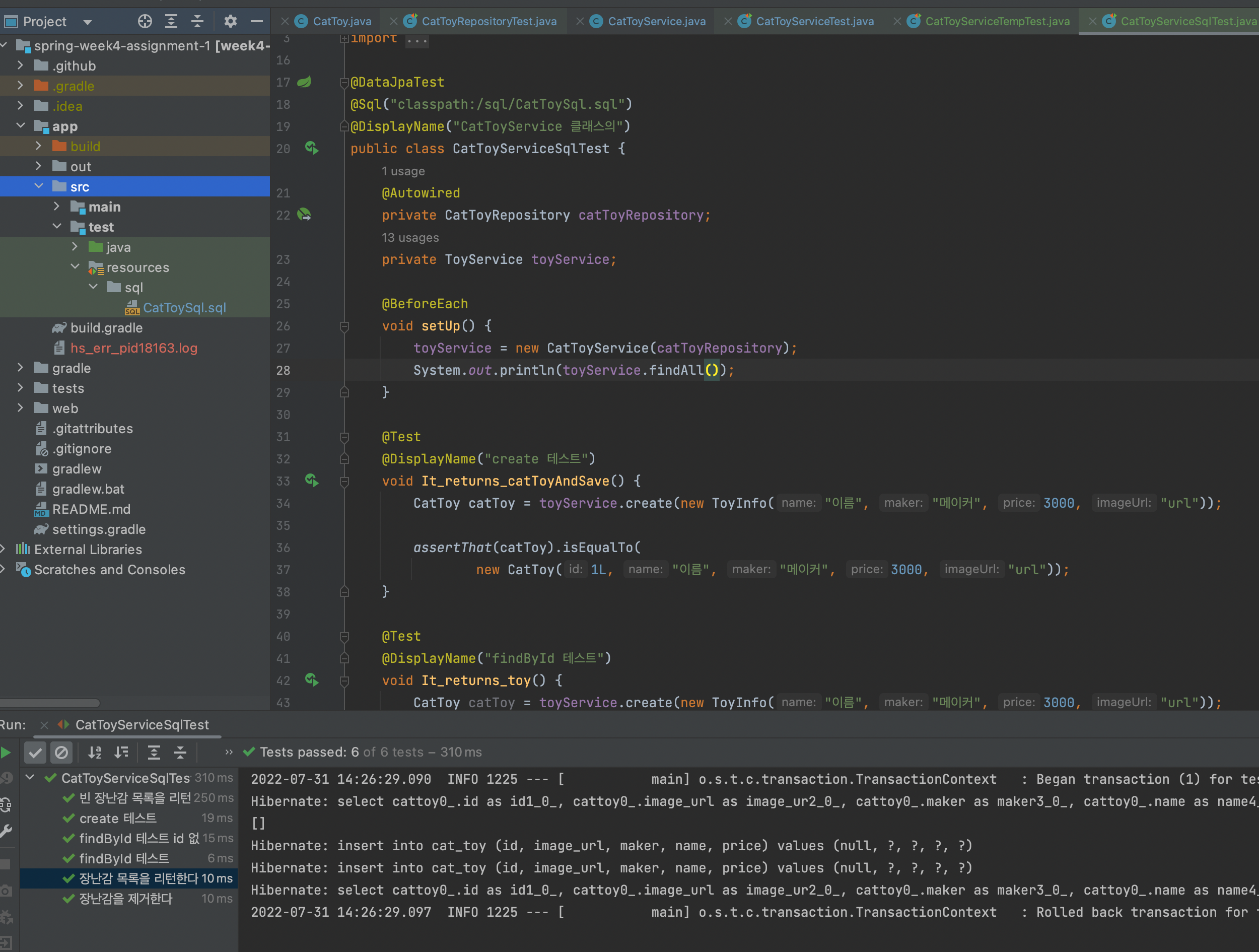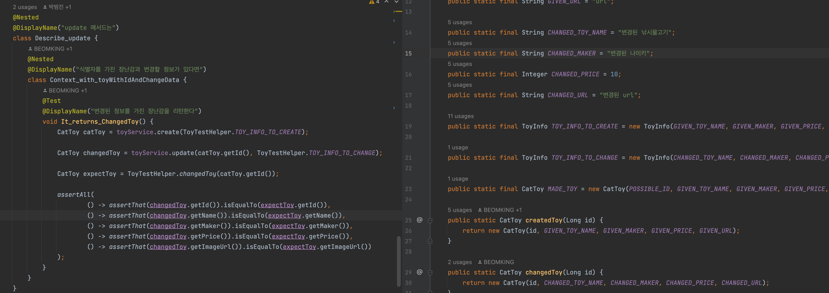 위처럼 Toy를 생성시키고 Toy의 id를 가져와서 기대하는 Toy를 id를 파라미터에 넣어 만들어 같은 id임을 보장함으로써 id에 영향을 미치지 않는 코드를 작성했다.