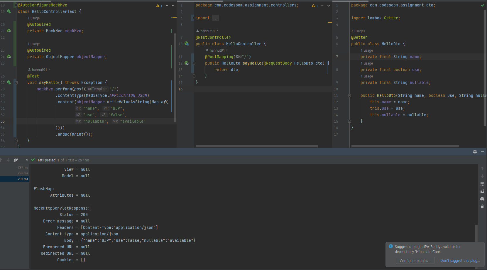 public HelloDto(String name, boolean use, String nullable) {